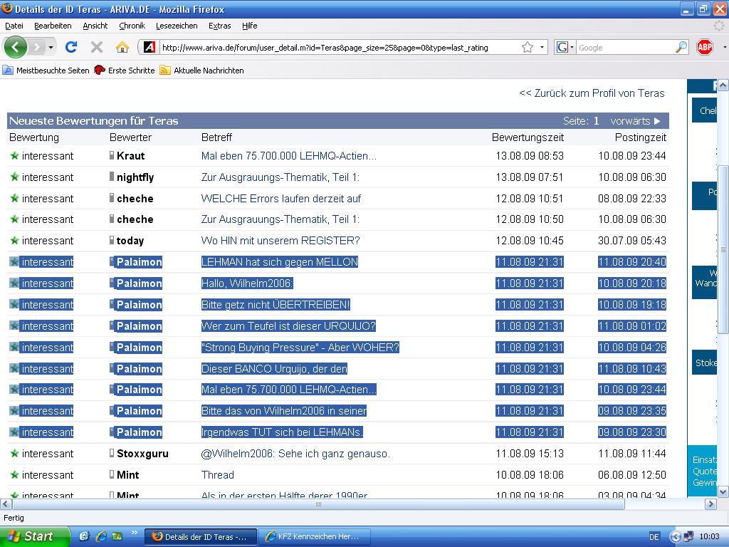 Als ich aus Deinem Profil http://www.ariva.de/profil/Palaimon heraus Deinen jüngsten Thread "HUCH ?" (PHOTO desselben: siehe unten) aufrufen wollte, wurde ich einer ganz seltsamen FEHLER-Rück-Meldung teilhaftig, die in meinem nächsten Beitrag graphisch documentiert werden wird...