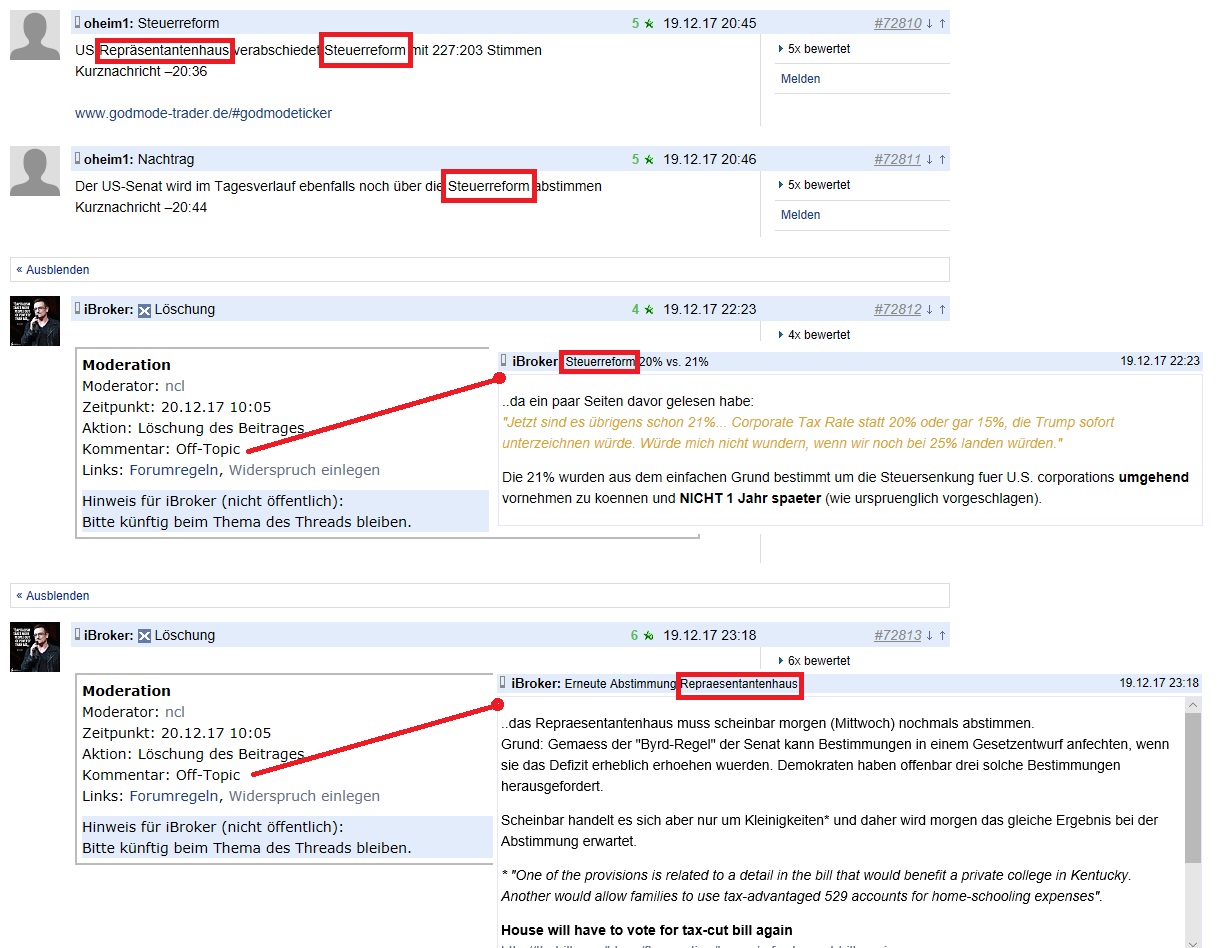 Siehe Anhang: nach der Einladung, die ariva Zensur wurde schon am naechsten Tag getriggert (die letzten 3 Beitrage voellig unberechtigt).