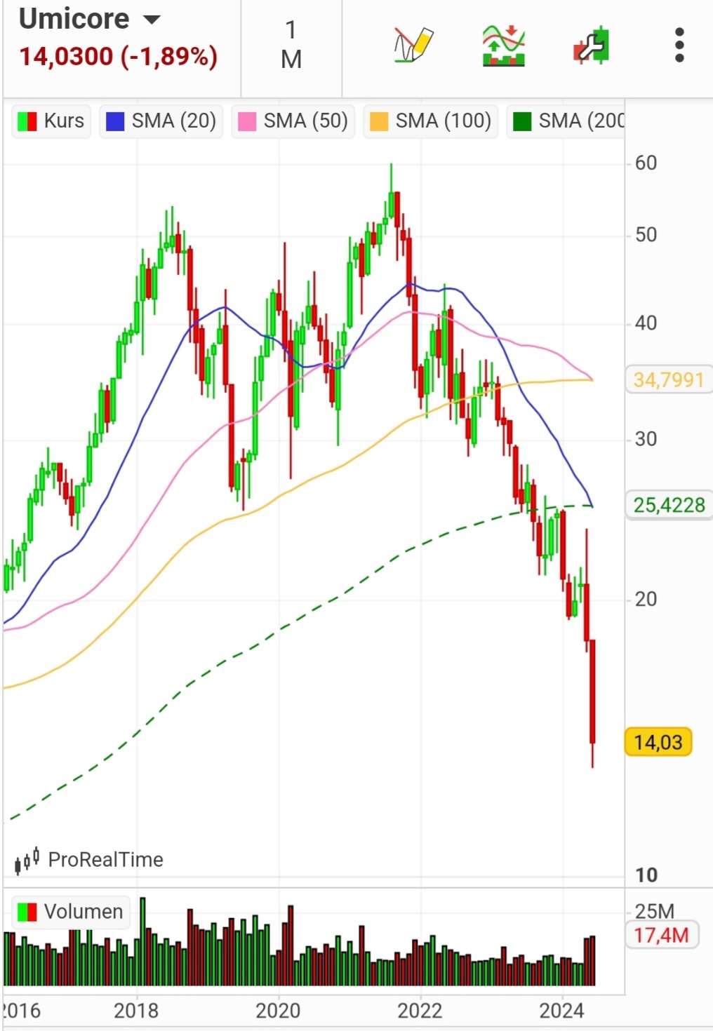 Und der Markt tut so als würde Umicore Verluste schreiben. Ist das inzwischen eine super Chance auf eine Verdoppelung oder mehr- oder übersehe ich etwas?