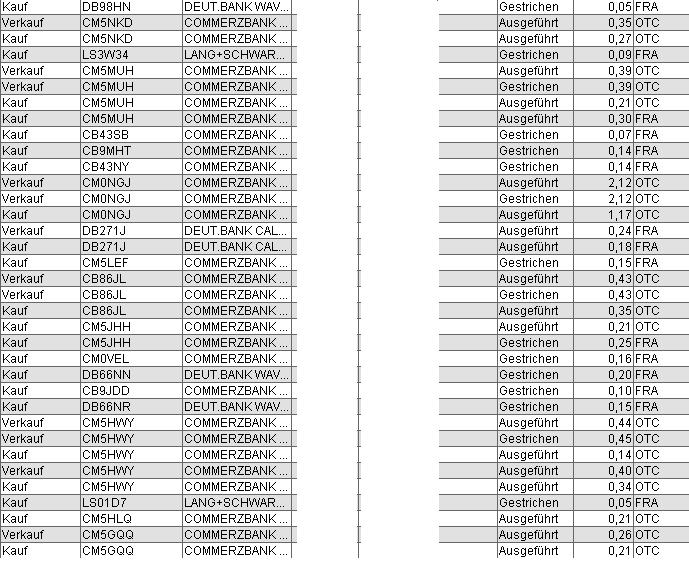Also zunächst mal, ich will hier niemanden kritisieren. oder angreifen. Jeder ist seines eigenen Glückes Schmied. Ich wollte nur meiner Einschätzung Ausdruck geben, daß man mit mancher Art Zockerpapieren unter dem Strich auf Dauer nur verliert, weil das Risiko schwer einschätzbar ist. Ich habe mit "heißen" OS in 2002/2003 viel Geld in den Sand gesetzt. Besser wurde es, als ich nach einem System handelte mit einem festen Einsatz pro Trade (wichtig!!) und Derivaten mit geringem Hebel.