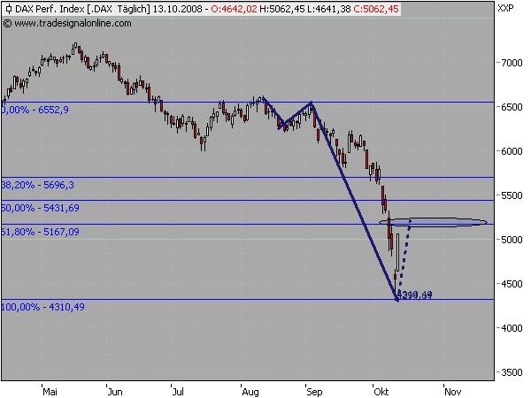 denn verglichen zur einer eher harmlosen New Economy Bubble vor ein paar Jahren, wo es lediglich um die Abwicklung einiger "Internet-Klitschen" ging, sind die aktuellen Probleme also weit dramatischer da sie die ganze Wirtschaft und ihr Banksystem bedrohen... Dennoch steht der DAX mehr als doppelt so hoch als im Tief 2003 wo der Dow Jones auf 7286 Punkte (Tief 2002) gesunken war. Alleine das zeigt, dass der Kursverfall an den Börsen noch weit tiefer gehen muss bzw. wird. Unabhängig von möglichen kurzfristigen Erholungschancen gilt deshalb nach wie vor das Motto: