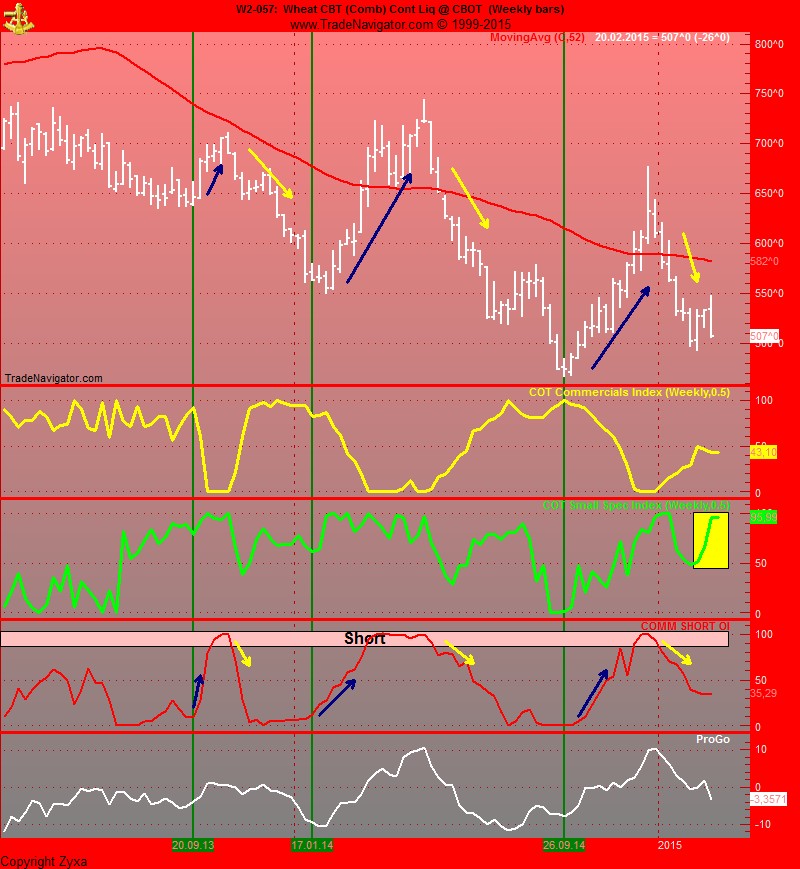 Zum 2ten cancle schleunigts dein Long auf Weizen, denn du Wettest gegen die Commercials und gegen die Shorts der Hedgefonds.