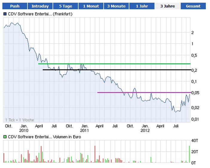 wenn ich mir heute sogar eine Agiplan anschaue die jetzt eine MK von 1,2 Millionen hat dann dürfte bei CDV ja locker 0,50 Euro drin sein.