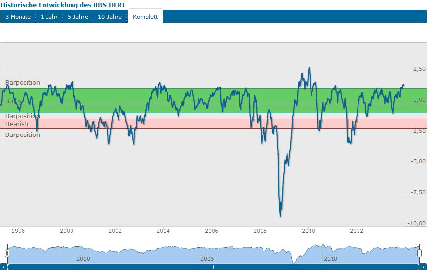 Der UBS-Deri-Indikator steht aktuell bei Barposition, also keine positive Einschätzung.