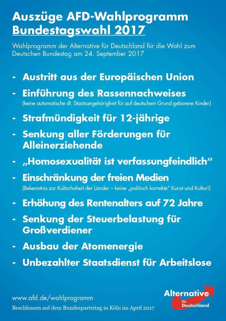 Sein AFD Wahlprogramm war ja auch interessant, die AFD aus Sicht des Juto.