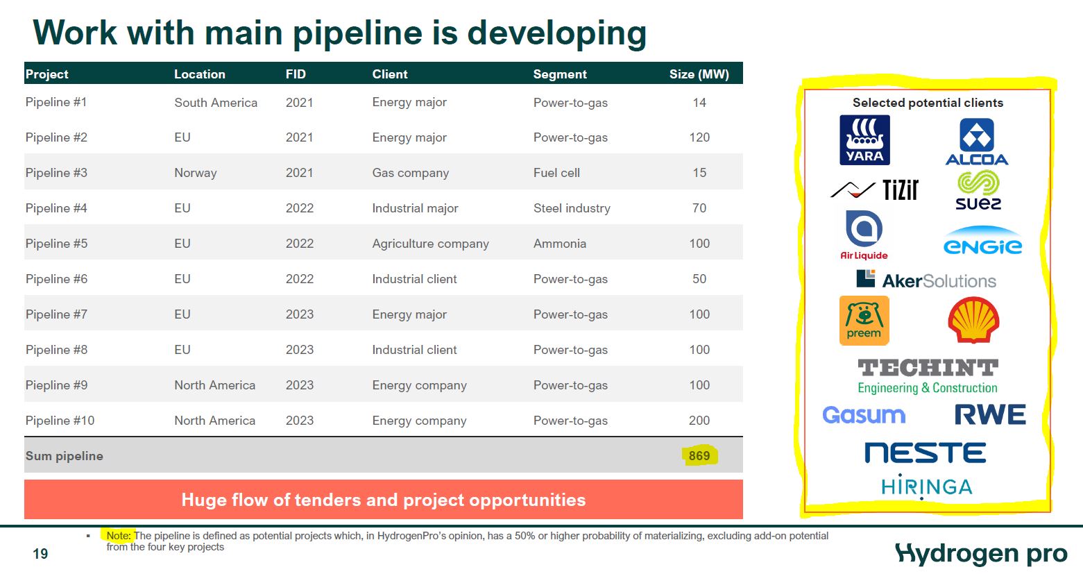 Zu den vorhandenen Verträgen mit 353 MW kommt später dann die Pipeline hinzu mit 869 MW und weitere ... z.B. sind Aker Clean Hydrogen und Yara in der Liste noch nicht dabei.