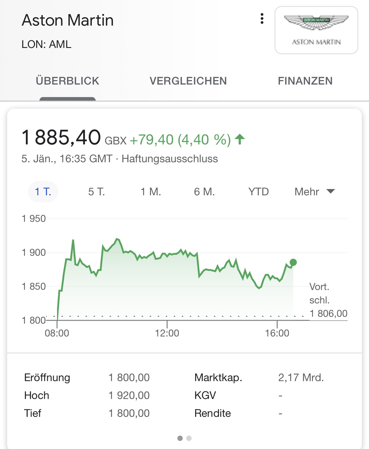 WKN: A2QJD4 / ISIN: GB00BN7CG237Aston Martin (WKN A2QJD4)