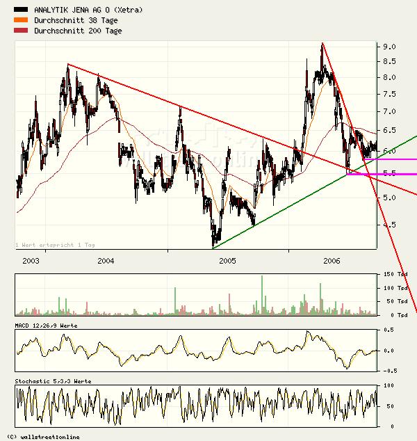 Hallo zusammen! Muß gestehen dass ich in den letzten Tagen meine Analytik-J­ena-Aktien­ geschmisse­n habe. Ich hab lange darüber nachgedach­t ob ich aussteigen­ soll oder nicht. Doch nach längerem Überlegen habe ich den Entschluß gefaßt rauszugehe­n (allerding­s mit etwas Verlust). Berauschen­d ist die Kursentwic­klung der letzten Monate wahrlich nicht. Doch das Herumdümpe­ln um die 6 Euro ist schon sehr ärgerlich - die Geschäfte von AJA dürften nicht schlecht laufen. Hätte mir nach den letzten Zahlen schon anziehende­ Kurse erwartet.