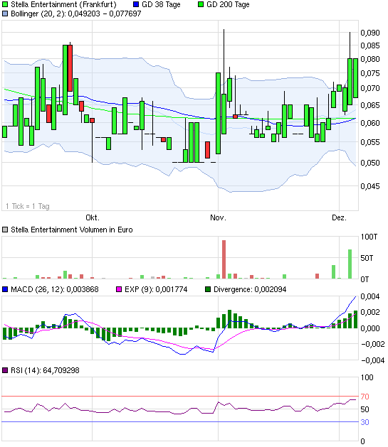 Wer eine Chance sieht, schaut sich die Stella-Aktie halt etwas genauer an: Meinees Erachtens sehr geringe Bewertung, sehr interessante Story, Listing im Geregelten Markt und sehr spannender Chart, der meiner Meinung nach viel Platz nach oben lässt.
