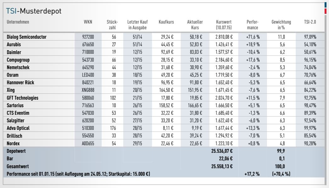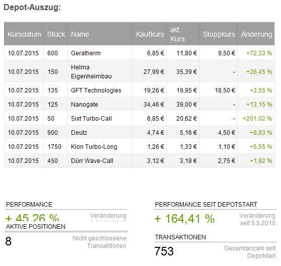 Alle Depots geben zwischen 3 und 6% ab. Nach dem Lob an den Aktionär beim letzten mal bedanken sie sich und geben ca 7% innerhalb der letzten 4 Wochen wieder ab. Dennoch mit 45,27% Jahresgewinn einer der Topperformer.