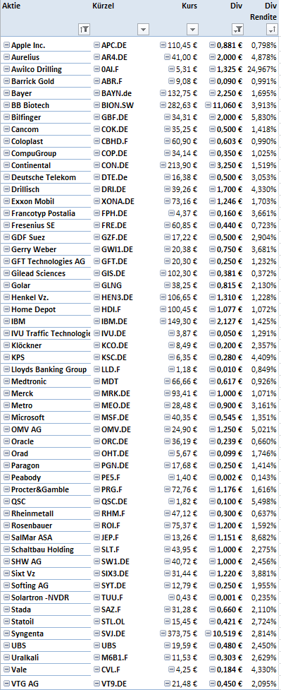 Weise wieder die Dividenden zusammengestellt hat, hier zunächst die Übersicht der bis 30.06.2015 berücksichtigten Dividenen (Dividenden werden immer Quartalsweise eingepflegt , Werte nach dem 30.06. werden erst nach dem 30.09. berücksichtigt).