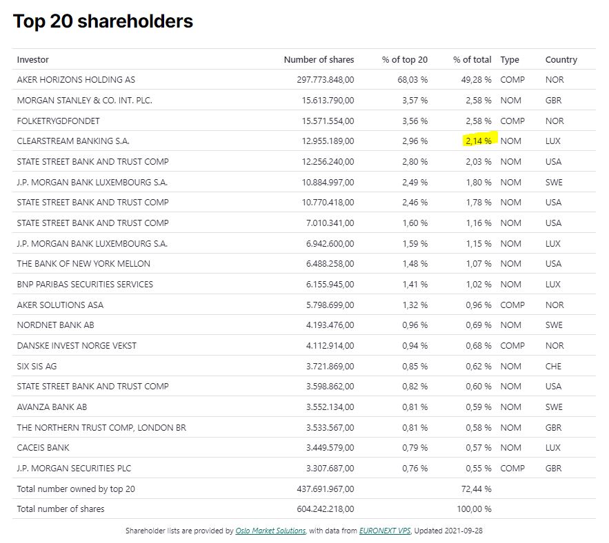 In derselben Ankündigung heißt es, dass Aker Horizons etwas mehr als 6,1 Millionen Aktien von Aker Carbon Capture an zwei andere institutionelle Investoren für 23,8 NOK pro Aktie verkauft hat.