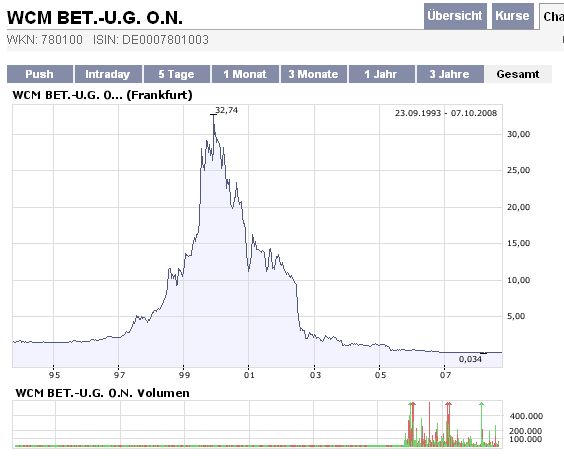 Die WCM Beteiligungs- und Grundbesitz-AG (WKN 780100, ISIN DE0007801003) bereitet die Wiederaufnahme ihres Geschäftsbetriebs vor. Am 01.11.2010 fand die erste Sitzung des Aufsichtsrats nach der Aufhebung des Insolvenzverfahrens durch das Amtsgericht Frankfurt am 20.10.2010 statt. Der Aufsichtsrat bestellte einstimmig Herrn Dr. Manfred Schumann zum neuen Alleinvorstand der Gesellschaft. Der neue Vorstand wird in enger Abstimmung mit dem Aufsichtsrat zeitnah eine Hauptversammlung vorbereiten, in der über die Fortsetzung der Gesellschaft beschlossen werden soll. In diesem Zusammenhang prüft der Vorstand diverse Optionen zur Einleitung von Kapitalmaßnahmen. Hierzu gehört neben einer Kapitalherabsetzung mit anschließender Barkapitalerhöhung auch eine Sachkapitalerhöhung und die Begebung einer Wandelschuldverschreibung zur Finanzierung des Erwerbs einer Beteiligung zwecks Nutzung der vorhandenen steuerlichen Verlustvorträge.