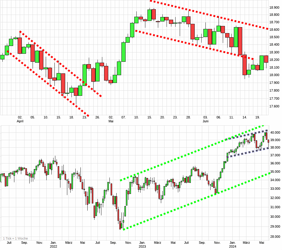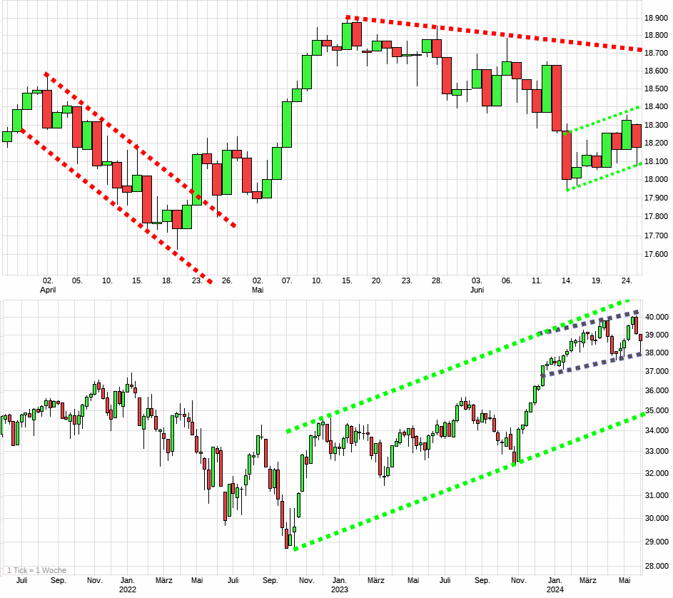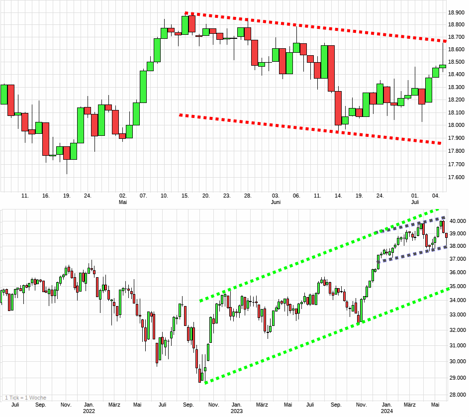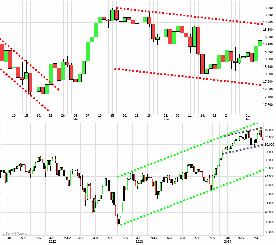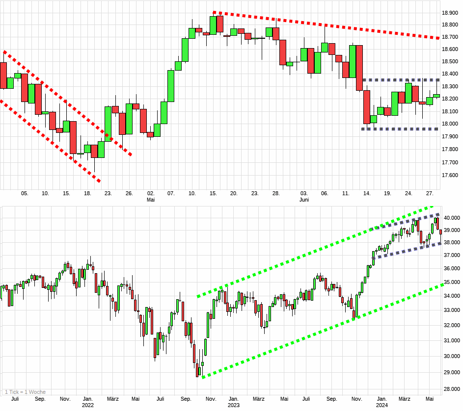 Die aktuelle Lage 18000 sind psychologi­sch wichtig und oben inzwischen­ 18600.