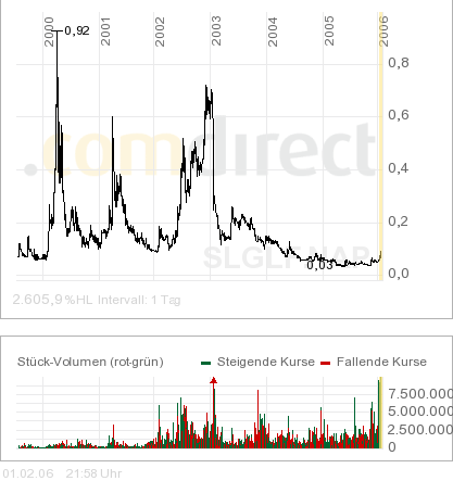 anfang 2001 - von 0,10 auf 0,60 usd
