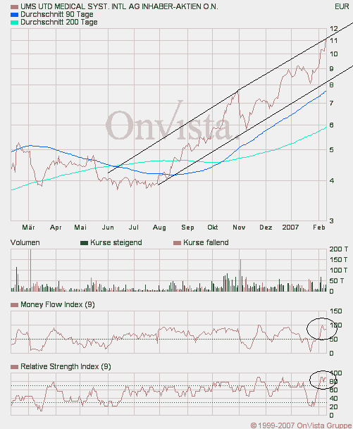 Ja, irgendwie sieht der Trend zu steil aus, aber andererseits gibts wieder klare kaufsignale und teuer ist die Aktie noch lange nicht. In 12 Monaten sind vielleicht KGVs von 15-16 noch billig für UMS (wenns UMS dann noch gibt).