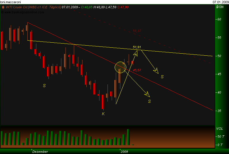 Habe eine Frage!!! Wenn ich mir den Oil-Chart anschaue, komme ich nicht von dem Gedanken los das sich da eine umgedrehte Schulter-Kopf-Schulterformation positionirt!?