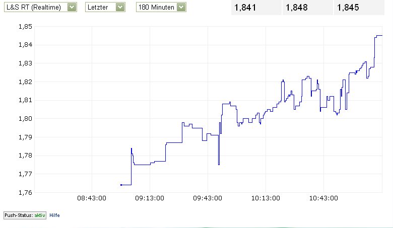 Der ollte durchschritten werden und Sk auch darüber, das wär dann positiv zu betrachten.. Aber klingt voreilig, da grad 1,5h erst gehandelt.. Jedenfalls scheint die Wortwahl zu Endoverpartnerung nicht negativ aufgenommen zu werden und das Zahlenwerk zu überzeugen.. Abzuwarten bleibt allerdings die AK ab 14:30, die durchaus "Kurs beeinflussend" sein kann, könnte..