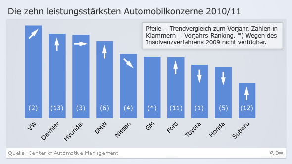 "Im Jahr 2010 und für 2011 sieht es ähnlich gut aus", sagt Institutsleiter Stefan Bratzel gegenüber DW-WORLD.DE, "da liegen die deutschen Hersteller sehr gut im Trend und können tatsächlich Marktanteile erhöhen und auch sehr hohe Profite einfahren."