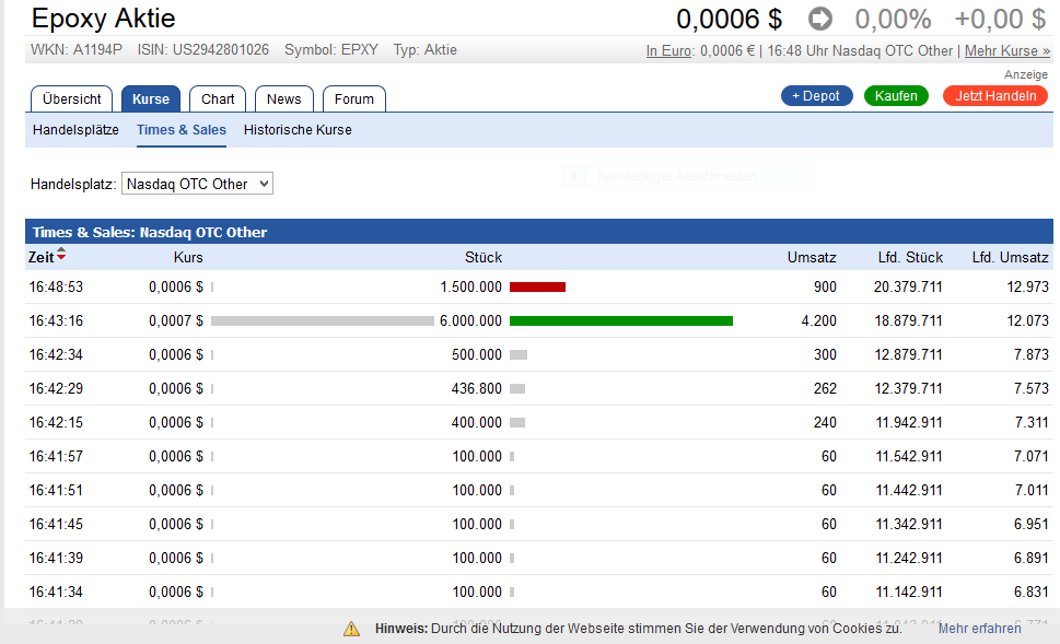 Ob Epoxy in Deutschland im Rahmen der MMVO/MAR 2016 im Freiverkehr notiert bleibt, können die Börsen leider nicht sagen, habe ich erfahren. Die europäische Aufsicht wird wohl erst Ende 2017 eine Liste der MTF veröffentlichen. Die Bafin hoffentlich früher !