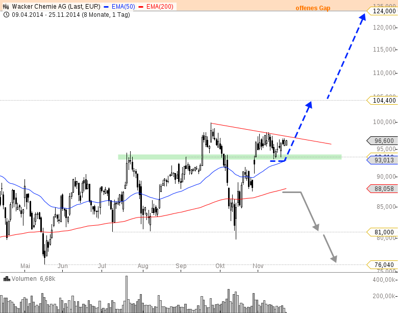 meiner Meinung nach könnte der Kurs bis 96,2 Euro laufen...dann wird es wieder sehr dünn.