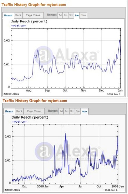 In der Trafficrangliste steht mybet.com einiges vor bwin.
