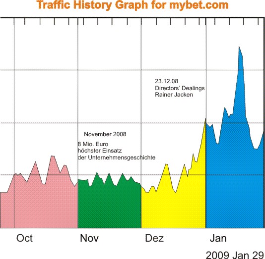 Im 3.Qartal 2008 weißt Jaxx Einnahmen aus Lotto von 17,0 Mio Euro aus. Wenn davon die Hälfte aus Deutschland kommt sind das schon mal 8,5 Mio, pro Quartal also 2,83 Mio Eur. Wenn ich es richtig weiß erhielt Jaxx 13% Provision für die Vermittlung, sind also Realeinnahmen (unter Berücksichtigung eines gewissen Kundenschwundes) von rund 15 Mio Euro - im Jahr sollten 60 Mio eingehen. Sollte sich Jaxx jetzt über die engl. Tochter mit Tipp24 zusammen getan haben, könnte man mit geschätzten 120 Mio Eur Jahreseinnahme schon einige Jackpots wegstecken. Entsprechend würde sich natürlich auch das Jahresergebnis verbessern.