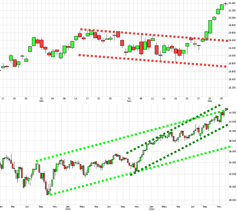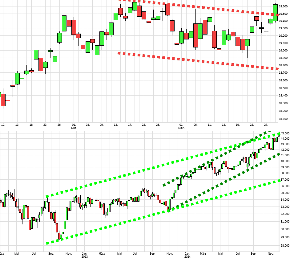 19400 wird kaum getestet werden dafür ist der Anstieg zu gross. Vor allem hatte ja die Seitwärtsb­ewegung alle abgeschütt­elt das hatte gereicht. Wie wir es bei Bitcoin und Gold gesehen hatten. Da wurde der Ausbruch auch nicht mehr getestet da die monatelang­e Zermürbung­staktik seine Wirkung nicht verfehlt hatte.