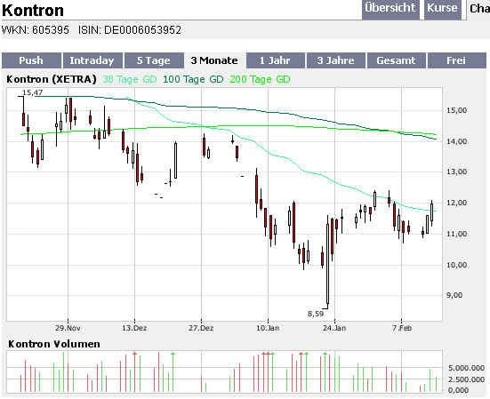 Die Aktie von Kontron hat am Dienstag nach schweren Kursverlusten kräftig ins Plus gedreht. Der Kleincomputerhersteller begeisterte die Börse mit der Aussicht auf eine deutlich höhere Dividende.