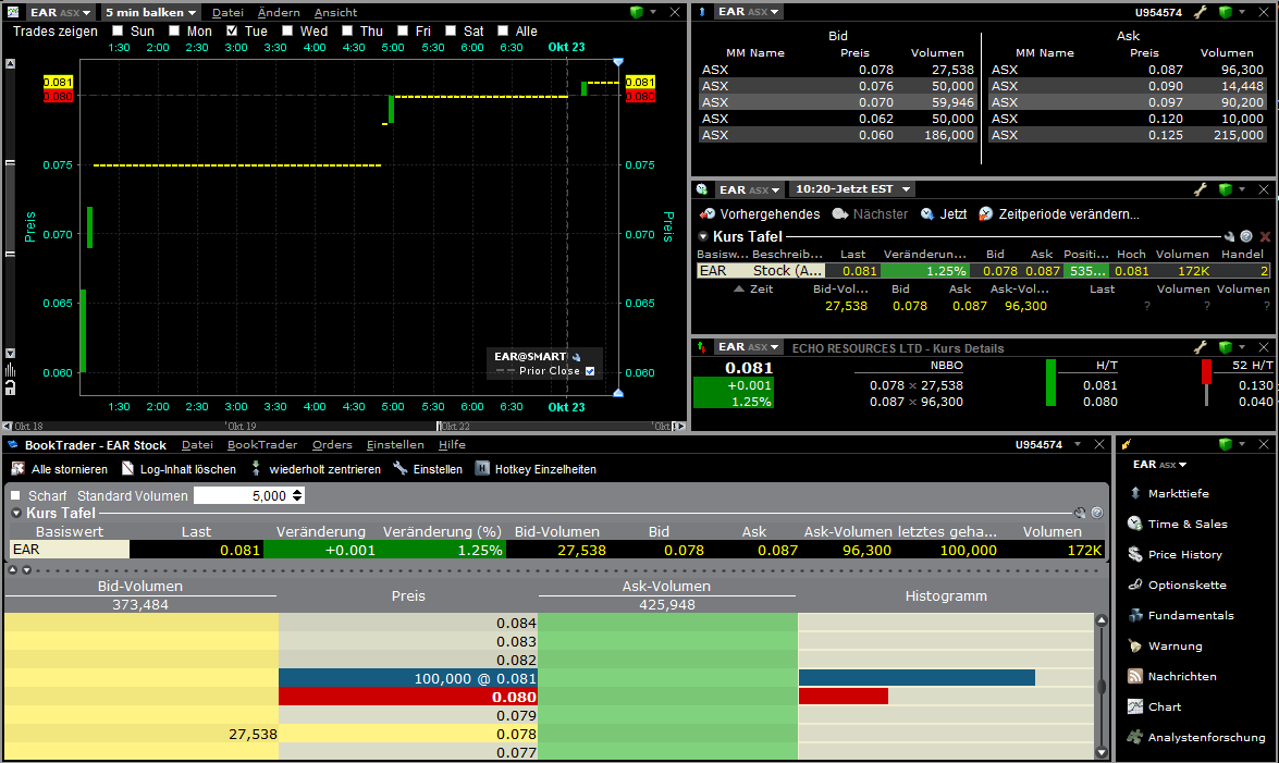 Interactive Brokers hat sich sehr viel Mühe mit der sogenannten "Mosaic-Darstellung" gemacht. Ein Klick auf einen Wert im Portfolio und man hat alle relevanten Daten auf dem Schirm. An dieser Stelle habe ich einmal Echo Daten zusammen gestellt ;-))