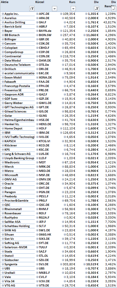 ich bin noch die Übersicht mit Dividenden schuldig