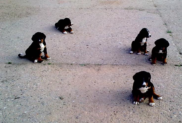 leider was zu dunkel gegen das Licht ... nachdem sie die ganze Zeit "mitgelaufen" sind und man aufpassen muss, wo man hintritt, haben sie sich irgendwann entschlossen, ne Pause zu machen und sich auf den Asphalt fallen lassen *g*