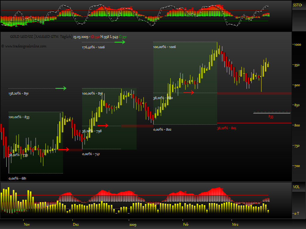 es liegen 3 moves vor die immer bis zur 38,2% marke korregiert wurden, dementsprechend kann man erahnen das es für die goldgräber nicht gut ist wenn die 880$ reizen