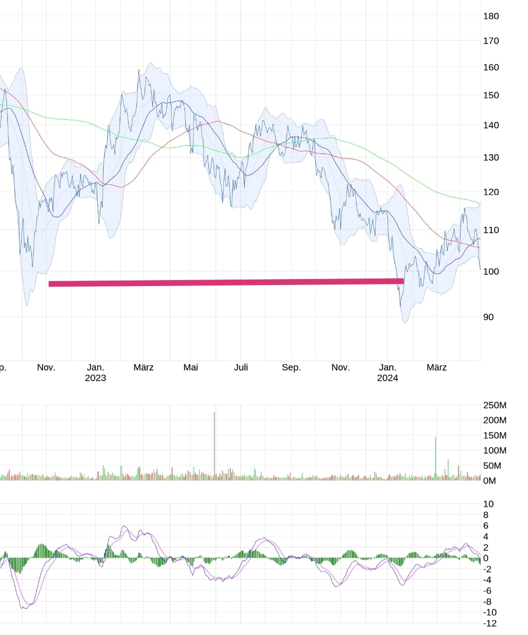 übertrifft Gewinnerwartungen und Chart : 21 TAge LInie ( 109,5 - 110 ) könnte fallen , dann wäre LUft bis € 115