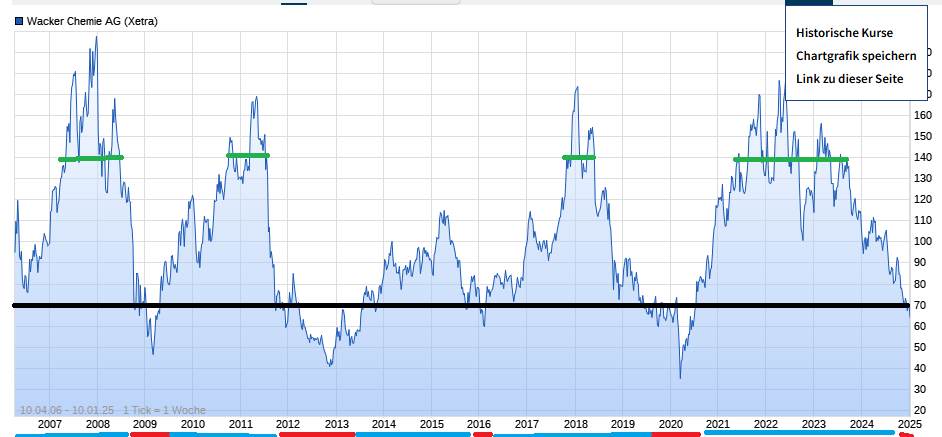 @Hippeland: mit KO Scheinen wäre ich auf Grund des relativ geringen Freefloat bei Wacker vorsichtig, der Anteilschein kann hochvolatil werden und dann bist du ausgeknockt während es dann 3 Wochen später gen Norden geht. Leider halten die Aktie viele zittrige Hände - siehe Lehman 2009, siehe Rohstoffpreise Silizium und China 2012, siehe Corona 2020.