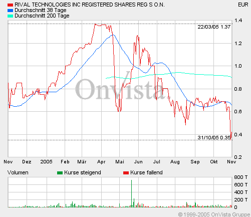 Rival 1 ging bis auf 0,62$ runter(0,5­14€,10.­01.),der tiefste Handel FSE