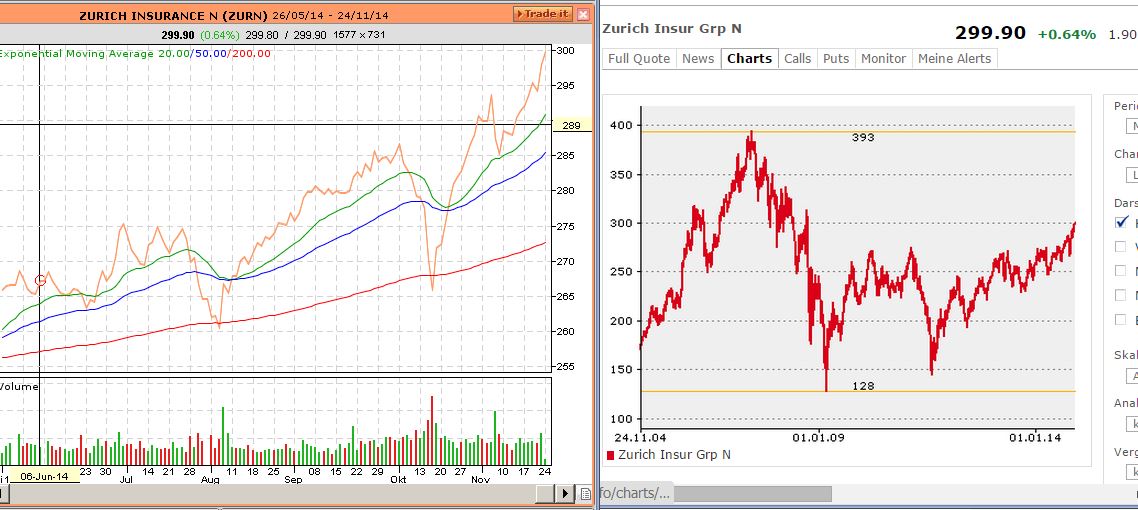 NameLetzterVeränderung ZURICH INSURANCE N CHF 289.60 1.60 (0.56 smiley