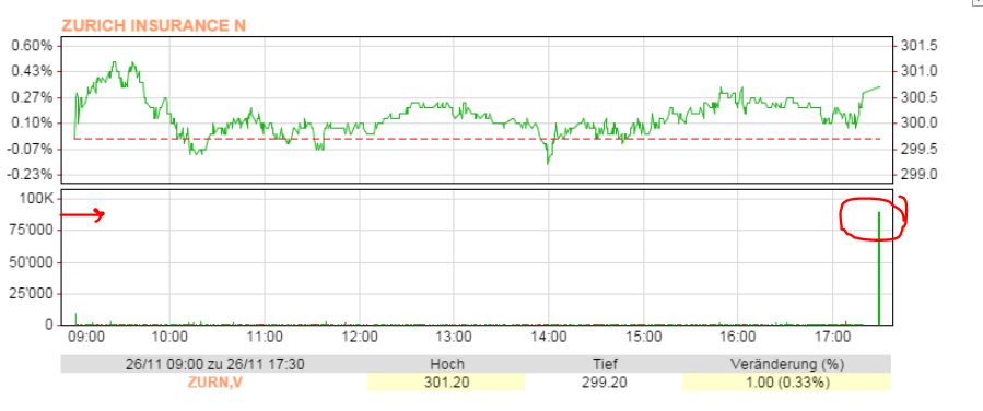 in der Schlussauktion einen Umsatz von über 90'000 Titeln Plus Off Ex 169k zu 300.7 Ich gehe davon aus, dass damit die Verkäufe der 300er Schwelle ausgeräumt sind