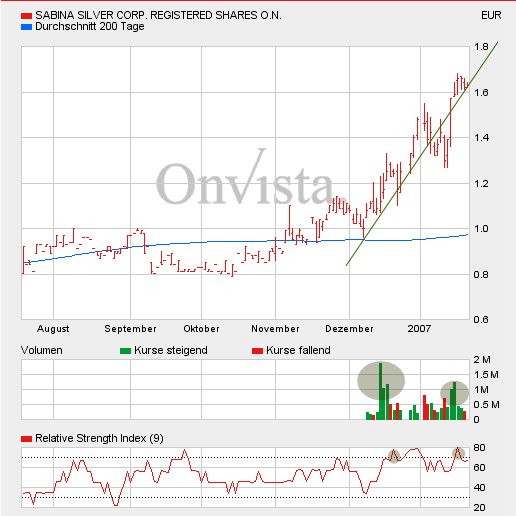 Sabina Silver (rxs), Börse:FFE, Kurs: 1,14+4,5%, Tagesumsatz:734.000 Aktien, TraderStop:1,05 (mit steigenden Kursen nachziehen)