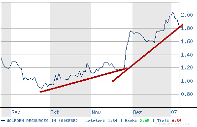 Freegold ist zwar auch unterbewertet, ist aber trotzdem total unbekannt (wurde ein paar Mal in den einschlägigen Börsenbriefen erwähnt, war aber immer nur ein Mitläufer). Wolfden dagegen wurde vor ein paar Wochen als "Highflyer 2007" genannt, hat die kritische Grenze vom Mini-Explorer schon lange hinter sich gelassen und zieht die großen Investoren auf sich - kombiniert mit einer totalen Unterbewertung schaut das überaus schmackhaft aus!