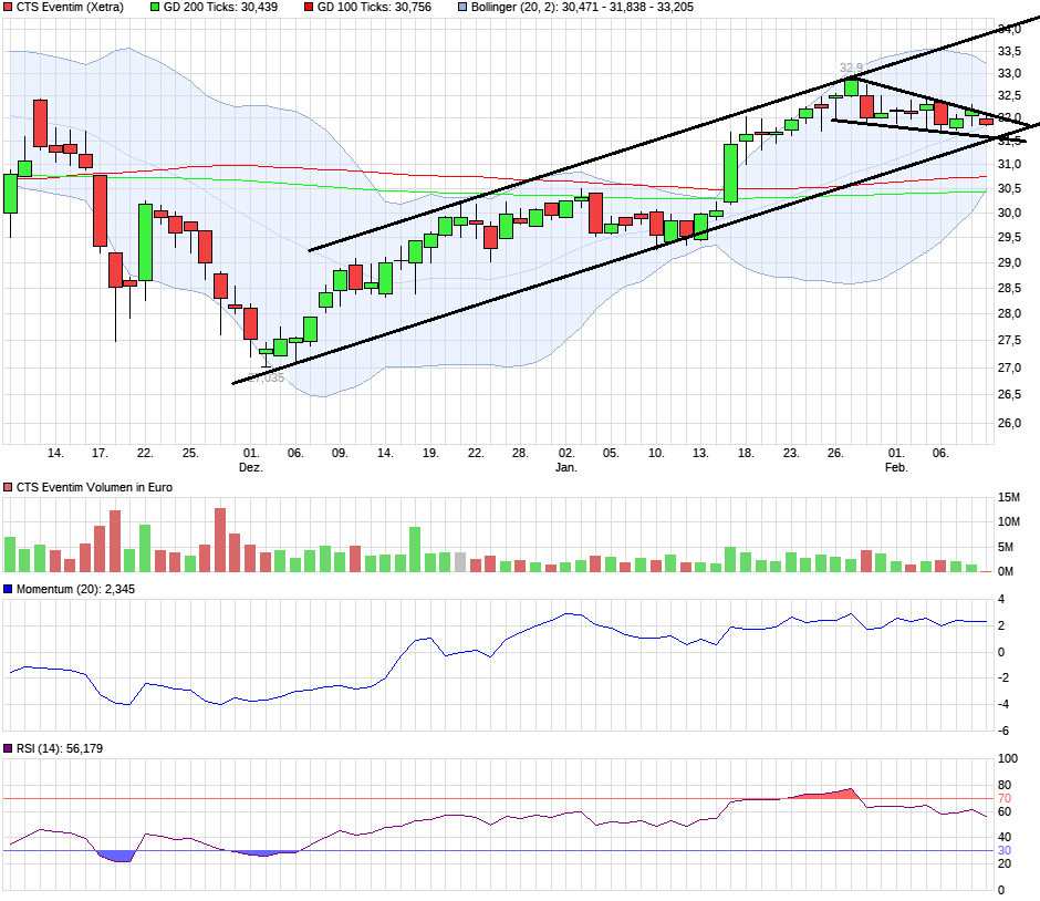 Jetzt kommen nach den Anschlägen von Paris sicherlich auch noch höhere Aufwendungen für Sicherheit dazu. Insofern denke ich, dass Eventim langfristig kaum noch steigende Gewinne machen kann. Damit ist allerdings ein KGV viel zu hoch. 15 halte ich für eine sinnvolle Zahl. Aber in dieser Branche weiß man natürlich nie was passiert. Vielleicht kommt irgendwann eine Übernahme. Man muss sich nur mit Schulenberg einigen. Könnte mir vorstellen, dass der auf dem Niveau nicht abgeneigt wäre.