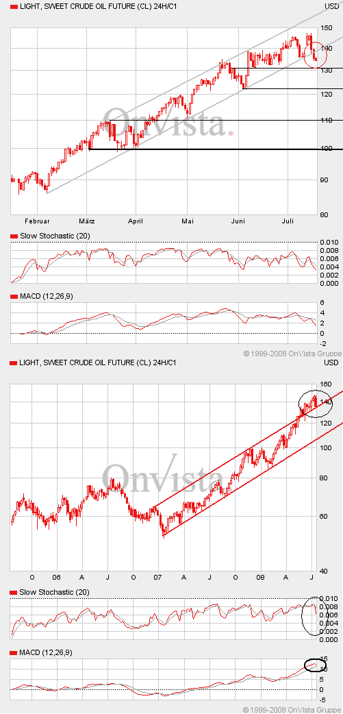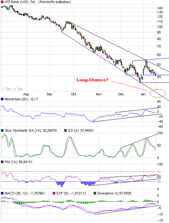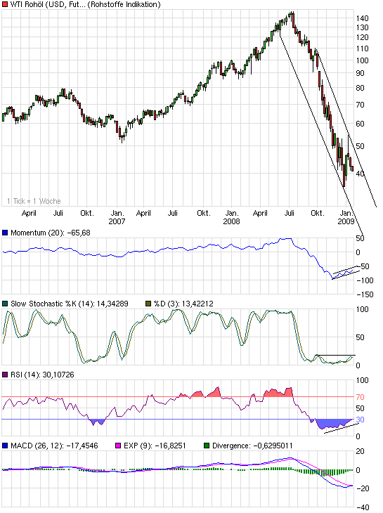 Öl fällt bis zur Trendlinie(3-jahres-chart) und prallt dort ab, bzw.