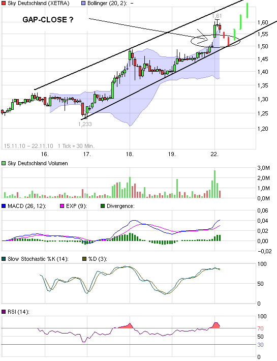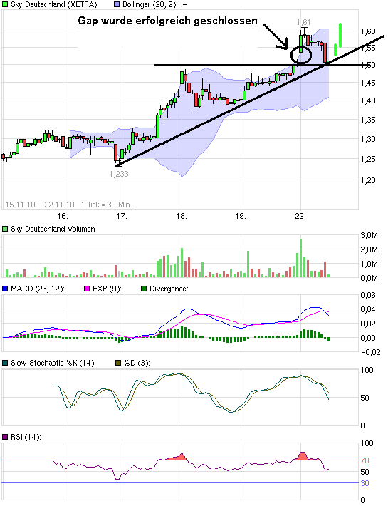 Wie heute morgen darauf spekuliert, hat SkY das Eröffnungs-Gap geschlossen.