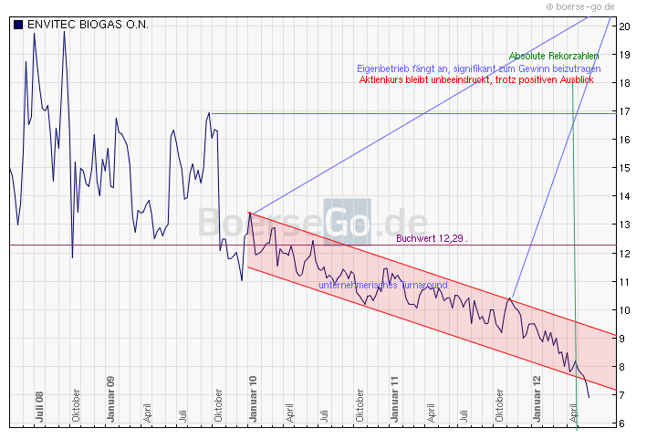 Der Kurs von EnviTec steht auch unglaublich tief, doch hier verstehe ich die Ursachen etwas mehr, trotz hervorragender strategischer Aufstellung und immer besser werdenen Zahlen. Aber mittlerweile bei fast dem halben Buchwert halte ich auch für übertrieben!