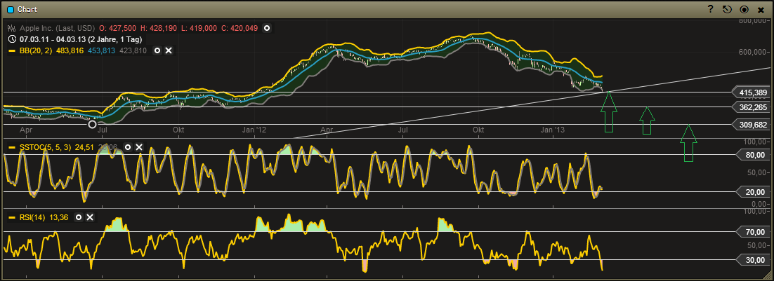 Ich glaube aber durchaus daran, dass Abwärtstrends plötzlich gebrochen werden können, wenn Indikatoren das unterstützen...Und Apple ist gerade nunmal kurz davor, massiv überverkauft zu sein...das ist Fakt. Bissel Luft nach unten ist, aber irgendwann kommen Schnäppchenjäger und Indikationen auf den Plan ,dann folgt die Charttechnik und der Abwärtstrend ist "in Gefahr"...schneller als man manchmal denkt.