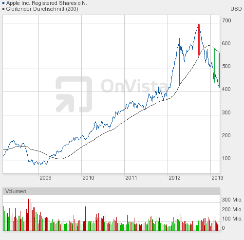 XL, so siehts aus...Abwärttrends kann man mit gewissen Risiko nachkaufen, wenn das Niveau bereits niedrig ist. Bei Apple ist vielleicht noch Luft bis 350 Dollar ...dort wäre mein erster Zukauf der jetzigen, noch kleinen Posi (EK 425 Dollar) ...Cook ist zwar gerade jetzt kein Innovations-Fukushima, aber ich glaube ihm zumindestens, dass Apple mittelfristig was in der Pipeline hat, was die Märkte wieder mal bewegt
