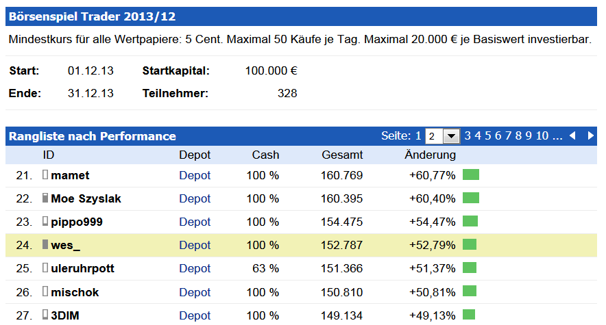 hm... hatte heute noch jmd. gelesen, der meine Tradingmethoden "zweifelhaft" nannte... wo steckt er denn unter den 328? kann ihn gar nicht ausmachen... komisch? wieso glaubt man dann, von etwas Ahnung zu haben? Das scheint mir einer von den "Kakadus" zu sein, hihi Tip: Bei Gnomen immer zu einer competition einladen, dort können sie sich "verausgaben"... im wahrsten Sinn des Wortes :-))) aber mitreden, noch lange nicht... .-) N8 pilots!
