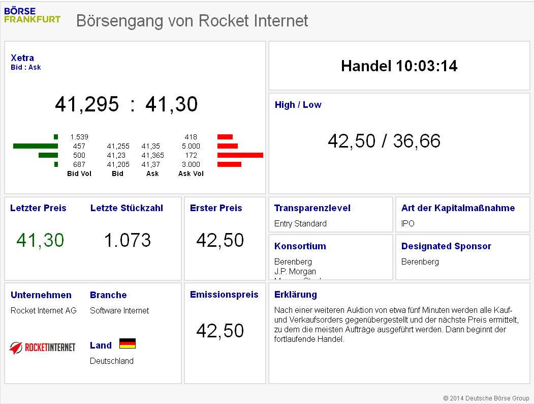 Habe so ein deja vu.das erinnert mich an die haffa brüder.unternehmen werden gehypt ohne ende und das böse erwachen kommt dann.rocket internet schreibt jährlich 431 mio verluste, wenn das nicht mal eine hausnummer ist.die samwer brüder rühm sich 100 verschiedene firmen unter einem dach zu haben.man braucht jahre das eine firma profitabel arbeitet.ich sehe das sehr sportlich.entsteht etwa wieder eine neue internetblase? Wer da investiert ist ist selber schuld und nicht die börse.