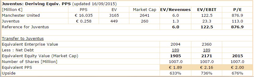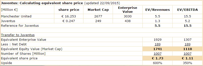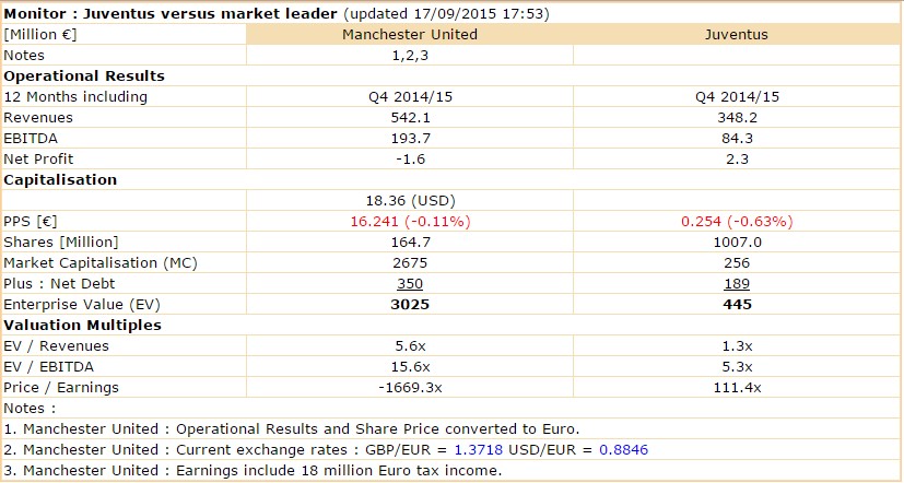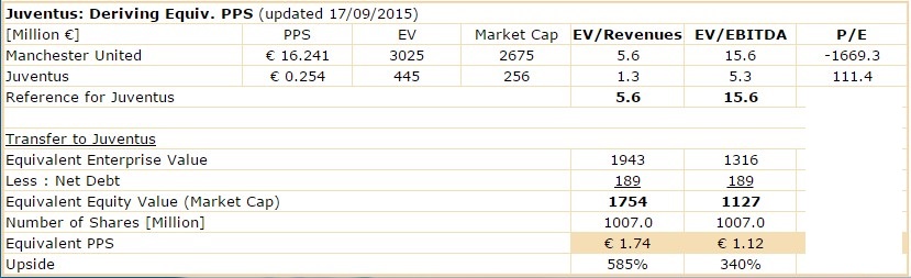Morgen bringt ManU ihre Jahresbilanz und kann ich belegen dass der Bewertung von Juve gar bei einem Kurs von 1 Euro im Vergleich immer noch moderat wäre.