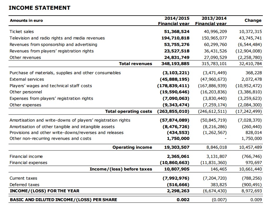 Trotzdem sind Juve und hinsichtlich Umsatz relativ gleichauf bzw nicht so weit auseinander. Auch wenn diese bei Beiden gewachsen sind.